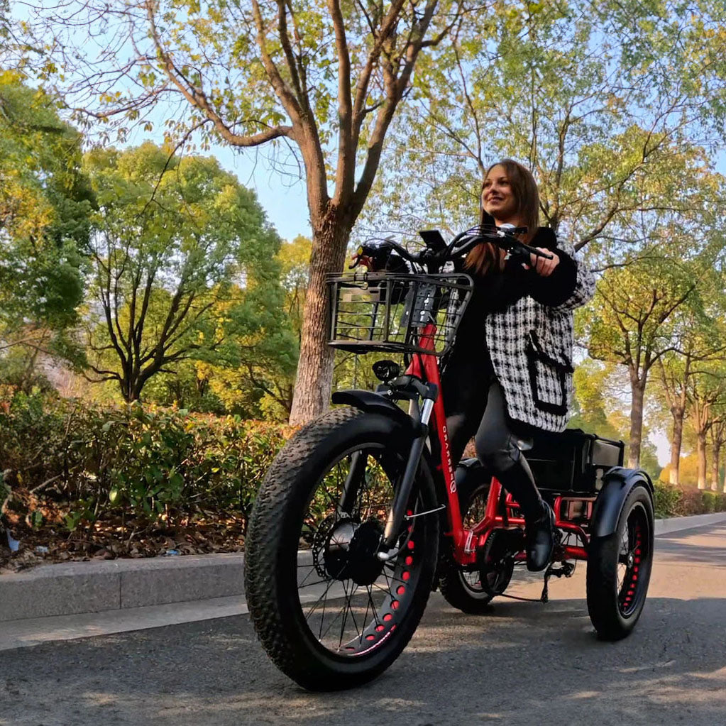 What sets this electric fat trike apart is its versatility. Our electric tricycle features all-terrain fat tires for smooth navigation across various surfaces, be it city streets or countryside trails. The bike's foldable frame allows for easy storage and transport, making it a practical choice for riders on the go.