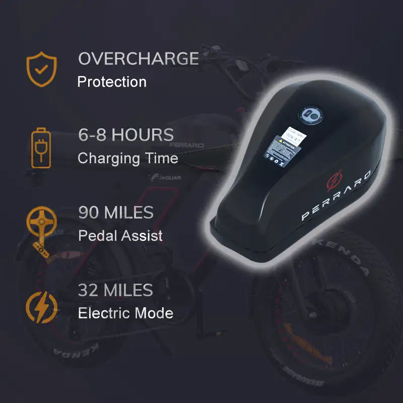 The Jaguar fat tire eBike comes with a 48V-25Ah Samsung battery, giving you a great range of over 90 miles on PAS1. This means you can go on longer rides and count on it to keep going strong.