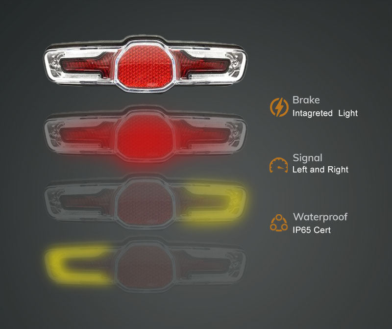 Front: Boasts a bright LED headlight. Rear: Features a dynamic brake light and turning signals for enhanced visibility and safety.