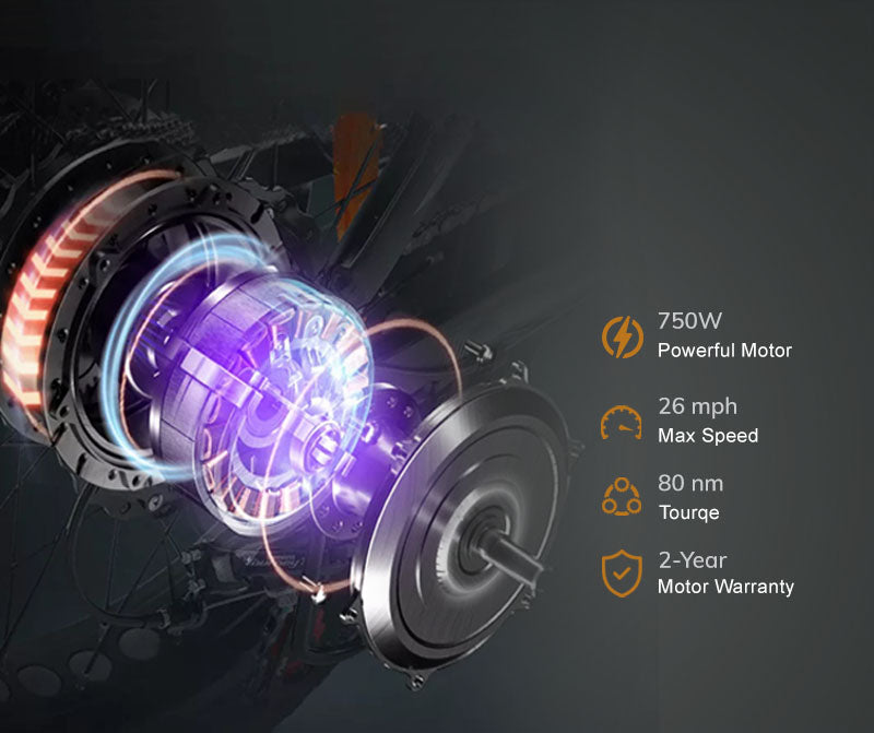 750W KXD dual motors, each peaking at 1150W with 90Nm torque for unparalleled riding power.