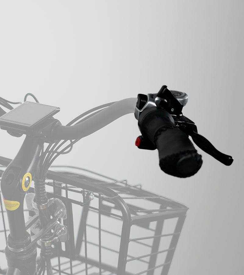 Stay visible with our electric trike's headlight and brake light, whether you're on a trail or a city street. Use the lever to flash the brake lights when slowing down. Our latest feature, the turn signal, keeps others aware of your intended direction.